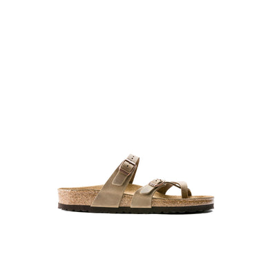 Il sandalo BIRKENSTOCK Mayari è un infradito dalla forma slanciata con cinturino incrociato attorno all’alluce. Il riuscito connubio di design e comfort fa di questo infradito, elegante e comodo al tempo stesso, la scelta ideale per donne e uomini attenti alla moda. La tomaia è in pelle Nabuk particolarmente spessa, oleata e lavorata senza cuciture.