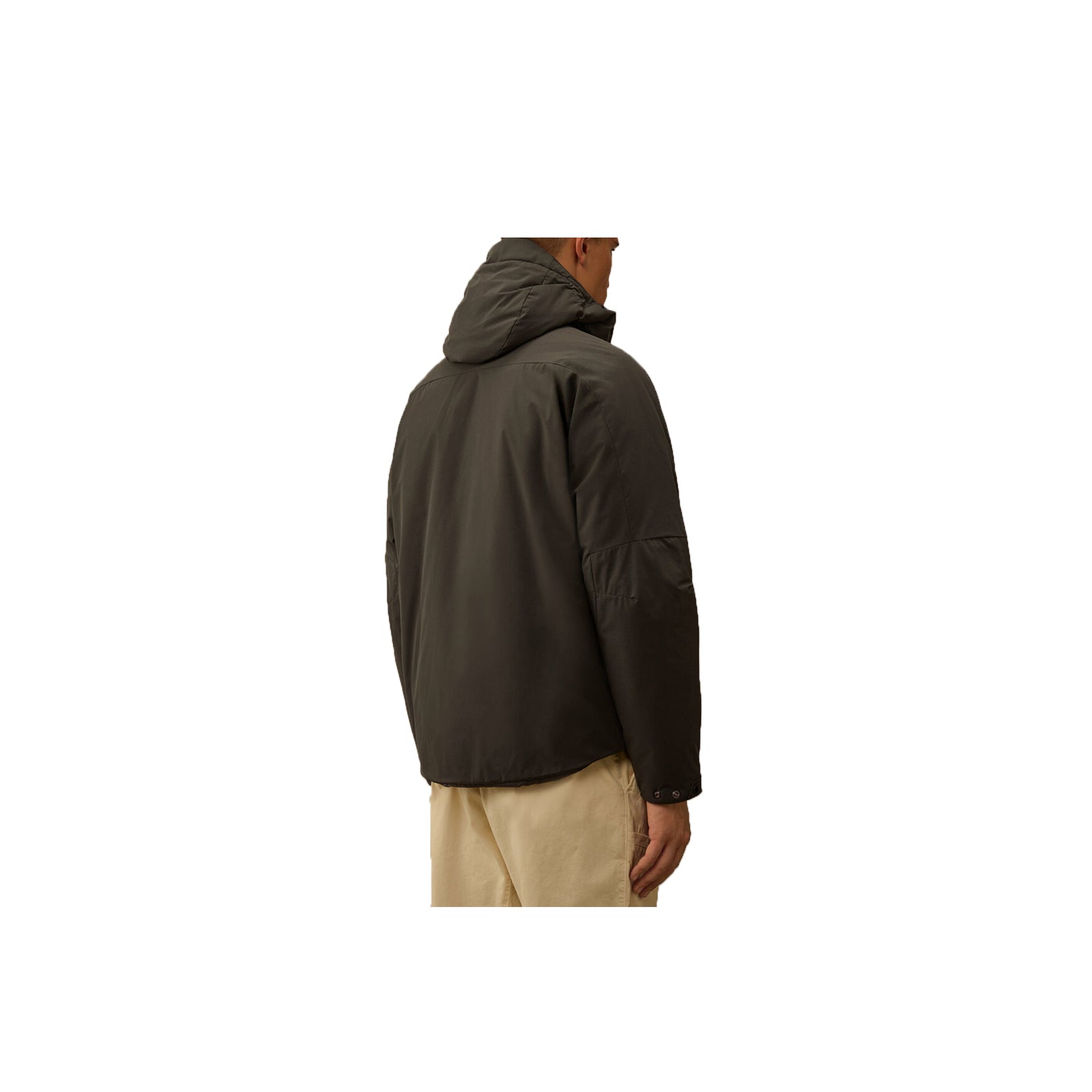 Giacca imbottita con cappuccio realizzata in Pro-Tek, un poliestere mechanical stretch, che combina il peso e il comfort di una maglia con la protezione di un capospalla. Il capo presenta l’iconica Lente di C.P. Company, una chiusura full zip a doppio cursore e tasche laterali con zip. Imbottita con ovatta Primaloft® Silver, una soluzione isolante con elevate proprietà termiche e traspiranti. Trattata anti-goccia. Regular fit.
