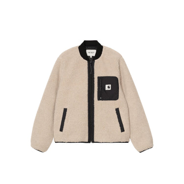 La W’ Janet Liner è realizzata in pile pesante 10,03 once e presenta dettagli in taffetà di nylon a contrasto e un solo taschino sul petto con etichetta Carhartt WIP. È caratterizzata da fodera in taffetà di nylon e da collo in maglia a coste.