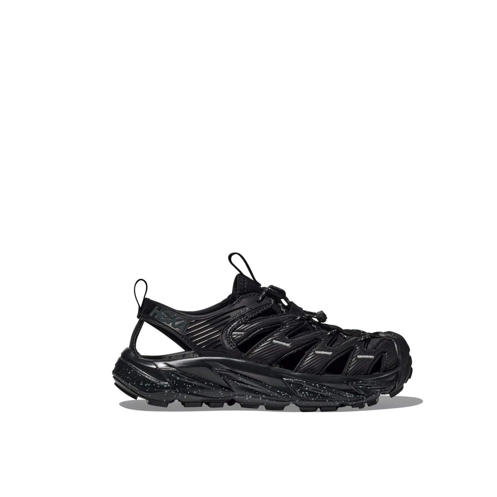 Perfetta per esplorare la natura, Hopara affronta con facilità qualsiasi terreno, asciutto o bagnato. Progettata secondo i principi di HOKA, questa calzatura è avanti per distacco agli altri sandali da montagna. Hopara presenta una tomaia sintetica con intagli strategici che facilitano il drenaggio senza sacrificare la stabilità. È dotata di collarino in neoprene per una flessibilità e un comfort superiori e di un sistema di allacciamento rapido. L’intersuola di Hopara garantisce una calzata reattiva ma ammortizzata, il rinforzo della punta gommato offre protezione e la suola in mescola ad alta aderenza consente di avere trazione in condizioni di vario tipo. In più, grazie alla presa dei tacchetti multidirezionali da 4 mm, Hopara è perfetta per ogni avventura.